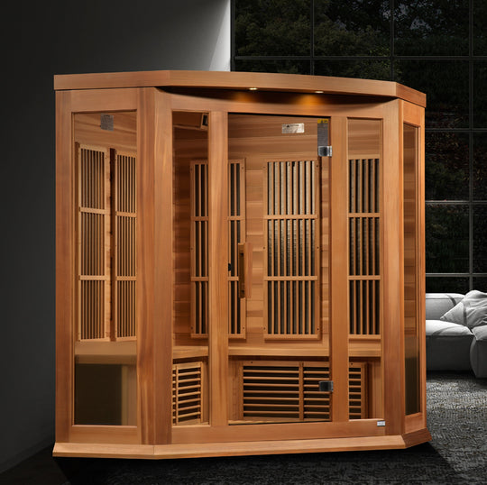Dynamic Saunas Direct Maxxus "Avignon" 3 Person Corner Near Zero EMF FAR IR Sauna (MX-K356-01-ZF CED / MX-M356-01-ZF CED)