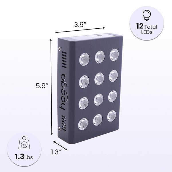 - Twelve 5W LEDs arranged for half?body coverage in a compact panel.
