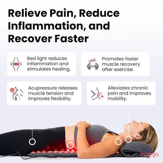 Hooga Red Light Therapy Acupressure Mat — Targeted Relief in 15 Minutes The Hooga mat combines red and near?infrared light with acupressure and gentle heat to help you ease muscle tension, support recovery after activity, and...Regular price $179.00Regular price $179.00 -