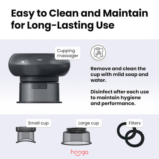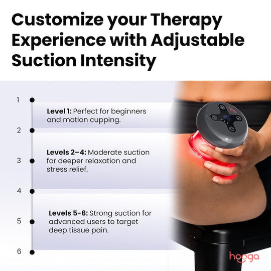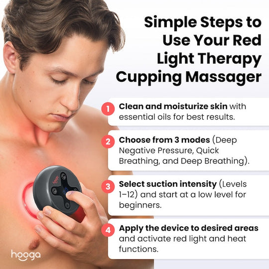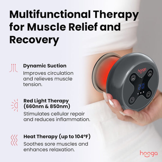 Hooga Red Light Therapy Smart Cupping Massager Hooga Smart Cupping Massager with Red & Near-Infrared Light Overview The Hooga Smart Cupping Massager combines dynamic cupping suction, red and near?infrared light, heat and vibration into a rechargeable,...Regular price $60.00Regular price $60.00 -