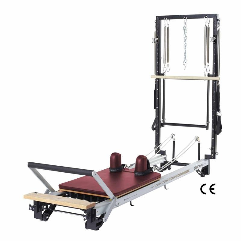 The SPX Max Plus is a versatile Pilates reformer that combines a traditional reformer carriage with a vertical frame and travelling pulleys to deliver three-dimensional resistance. It includes a patented retractable rope system, durable construction for studio use, and is CE Marked as a Class I medical device under EU MDR 2017/745, making it suitable for clinical and fitness settings.