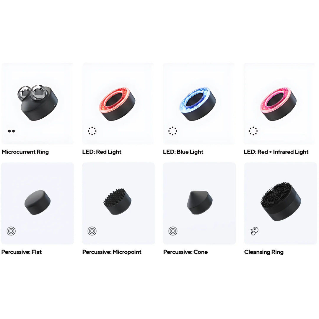 - Deep cleansing ring that uses percussive motion to remove dirt, oil, and debris from pores.