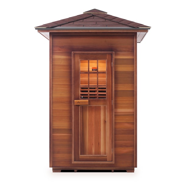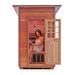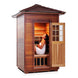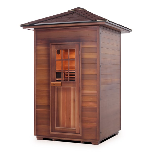 The Sierra 2 is a two?heater full?spectrum infrared sauna designed to deliver near, mid and far infrared wavelengths in a single session. It warms quickly to a maximum of 149°F and is available with indoor or outdoor roof options. Temporarily on back order — orders ship in 10–12 weeks.
